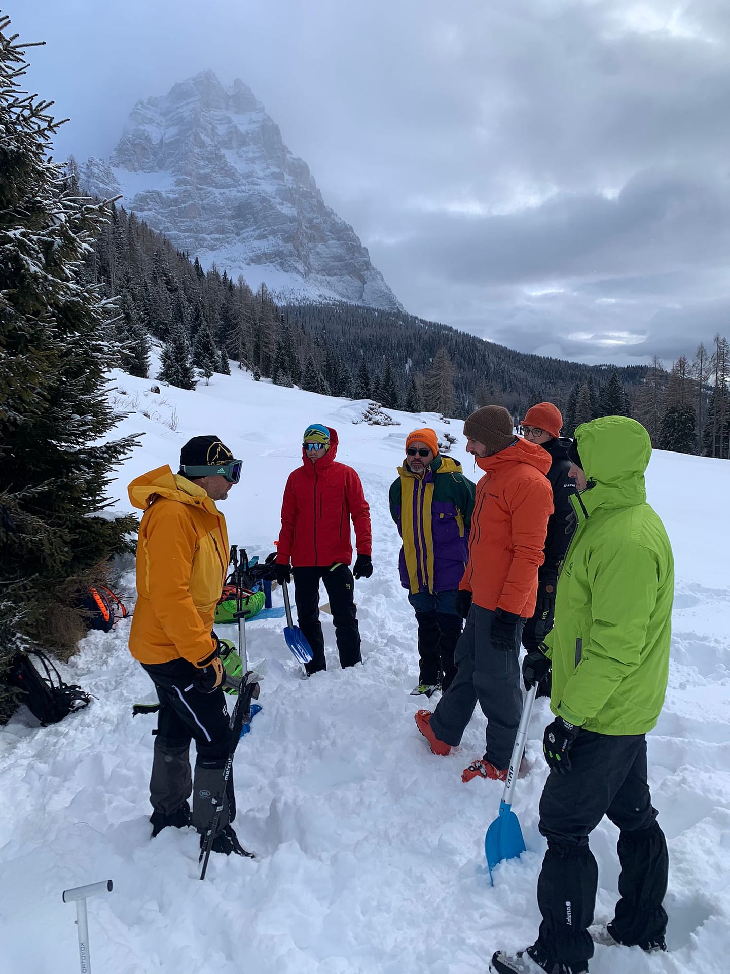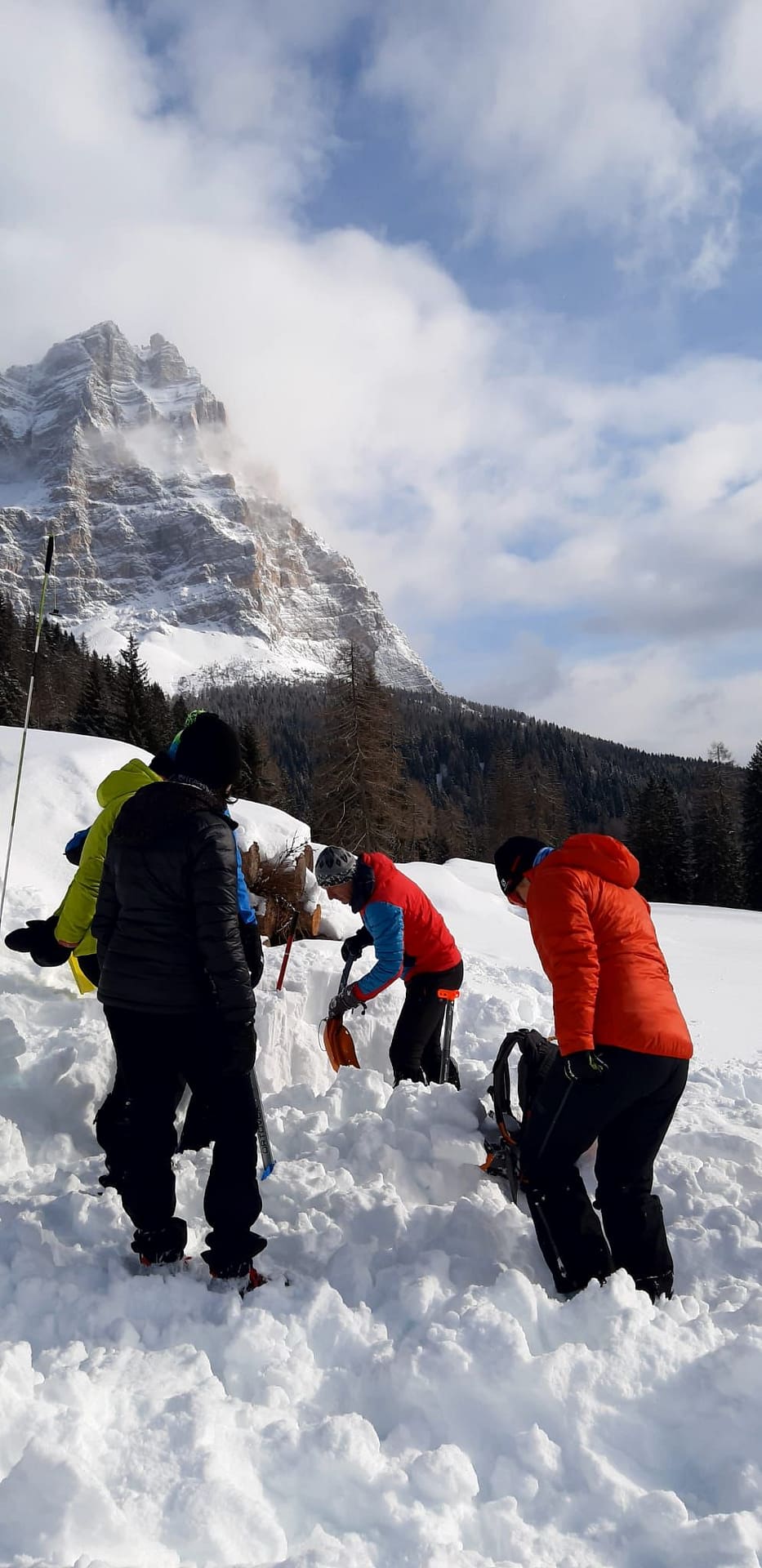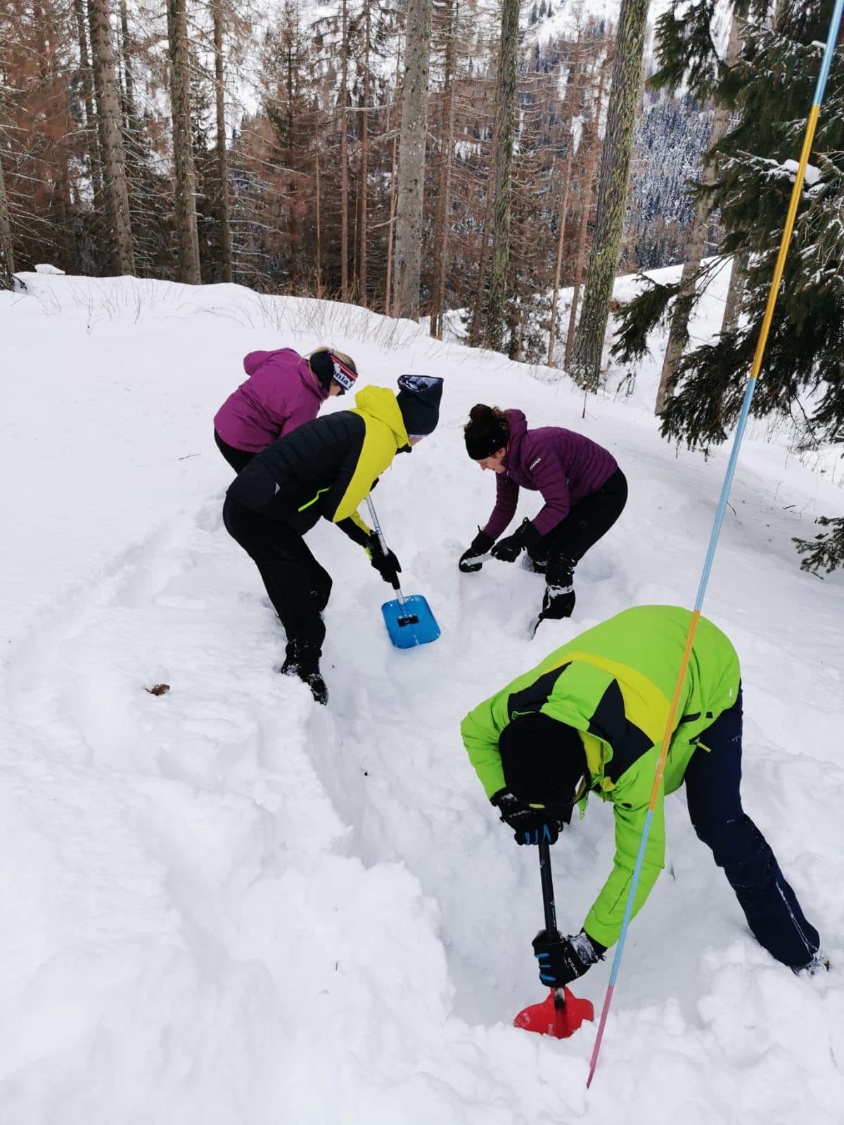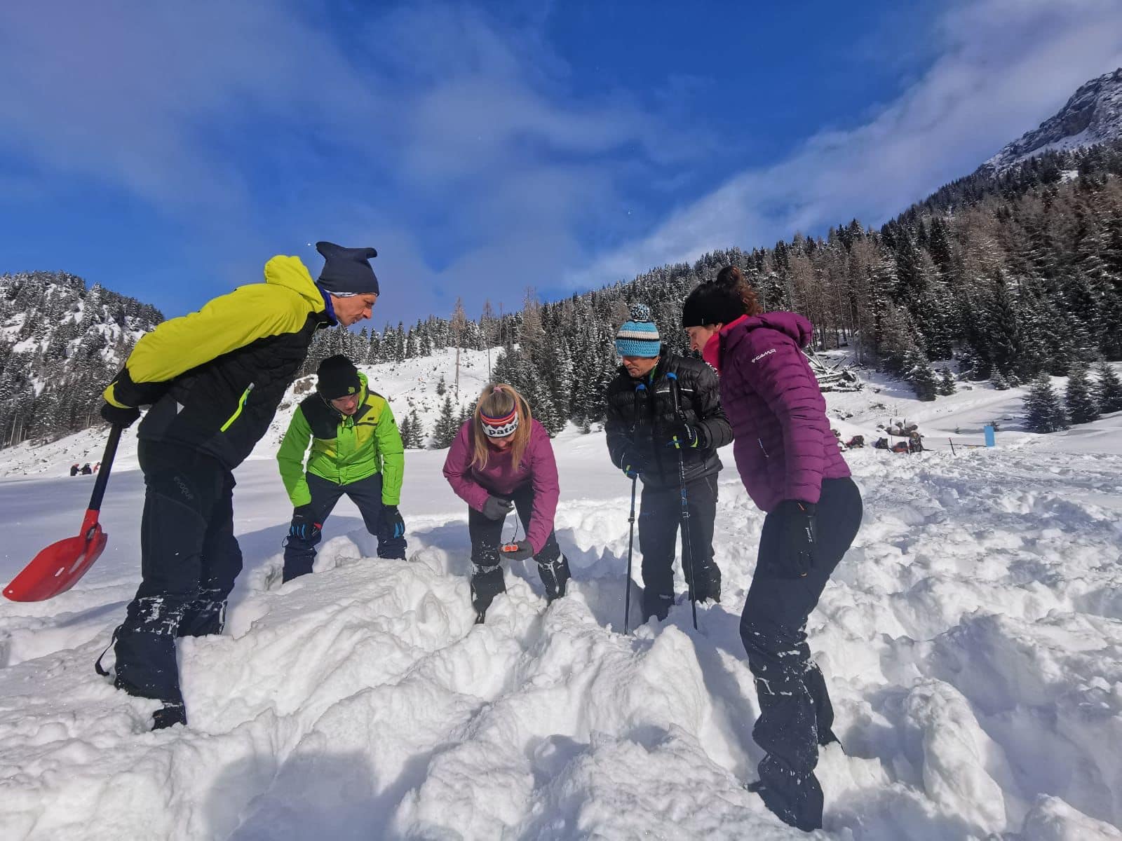 Due lezioni teoriche e due esercitazioni pratiche, di cui una in ambiente innevato hanno consentito a tutti di apprendere e provare le tecniche di autosoccorso con l’utilizzo di ARTVA, pala e sonda.